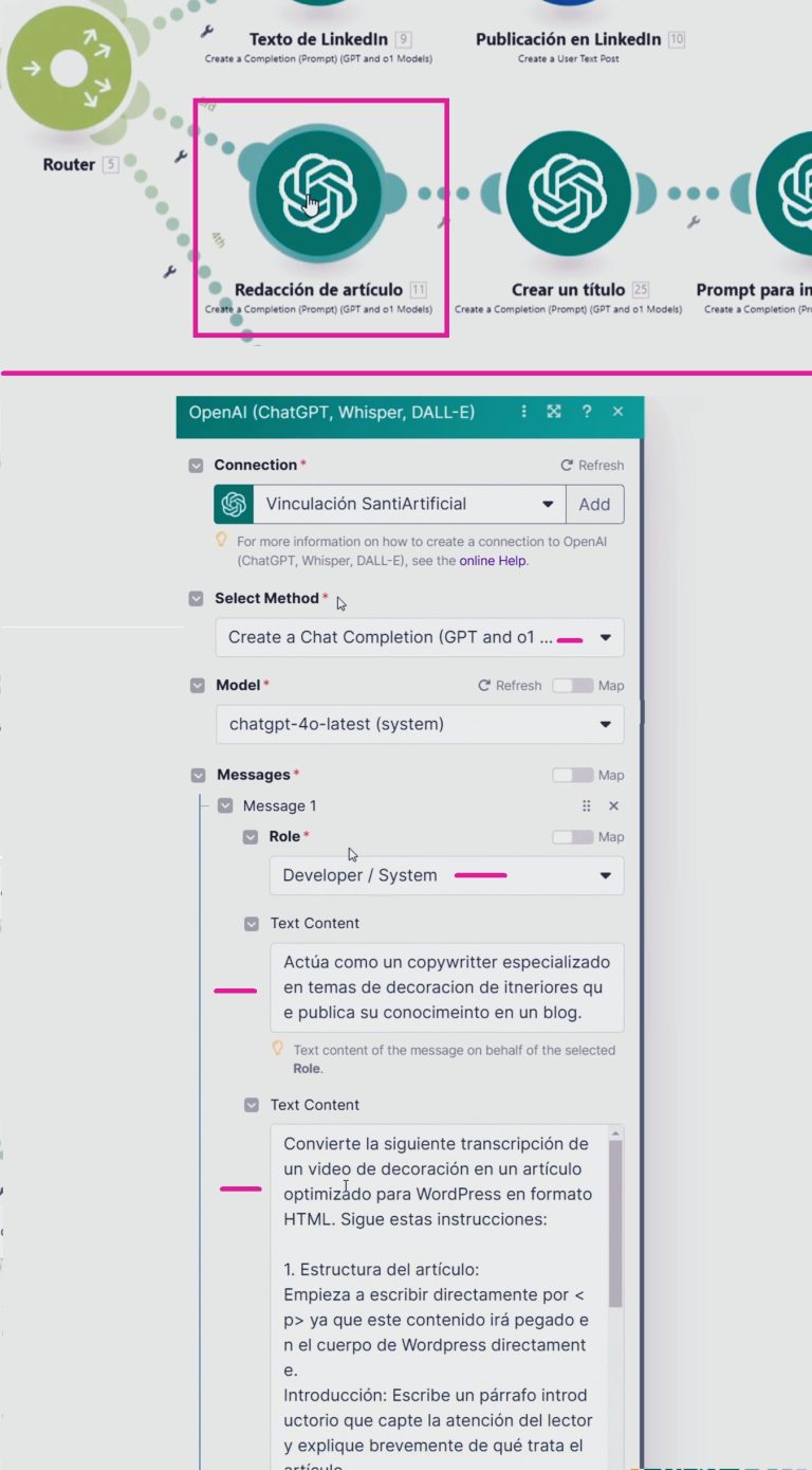 En el campo Content, coloca el cuerpo del artículo que generaste previamente.
