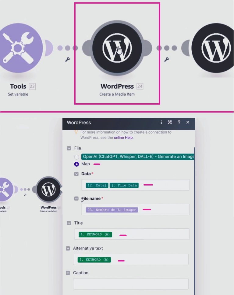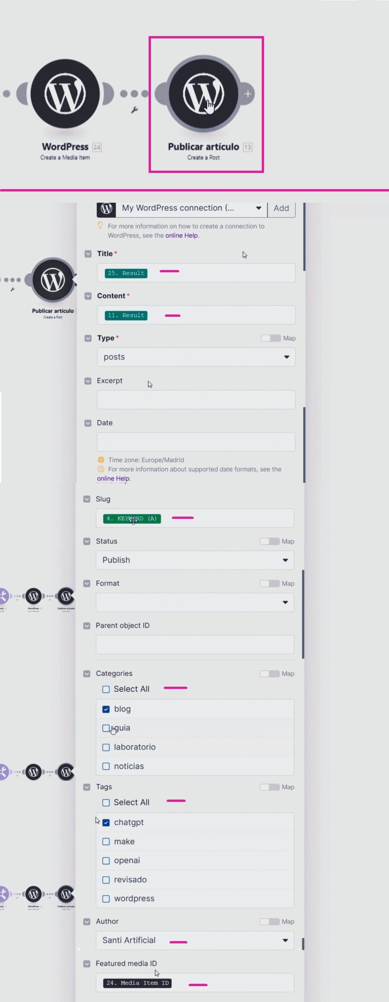 Utiliza el módulo Create a Post de WordPress para crear una nueva entrada.