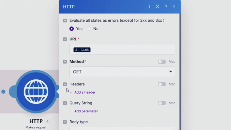 Ahora que ya hemos recopilado las noticias y sus URLs, el siguiente paso es extraer el contenido completo de cada artículo. Para ello, utilizaremos el módulo Make a Request – HTTP, que nos permitirá obtener el código HTML de cada página.