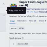 Accede a la Apify Store y busca el actor Super Fast Google News Scraper.