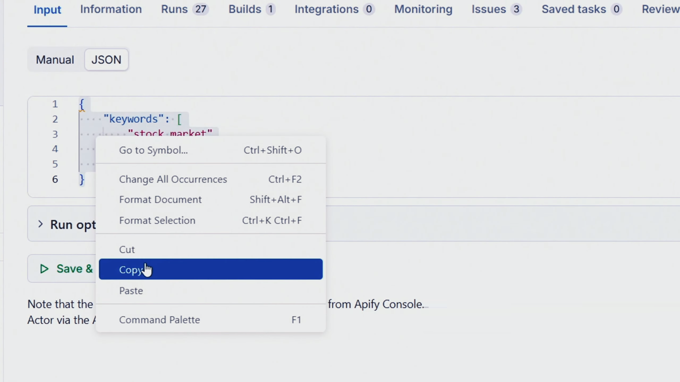 Haz clic en «Ejecutar» y deja que Apify haga su trabajo.