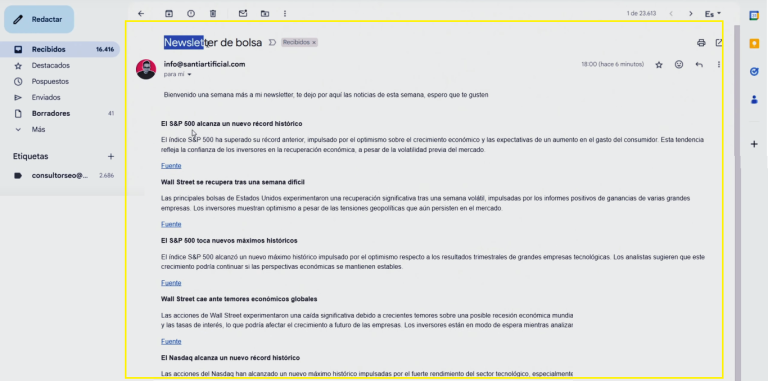 Con esto finalizamos la automatización de esta semana. Ahora tienes un sistema funcional para extraer, resumir y enviar automáticamente una newsletter con las noticias más relevantes.