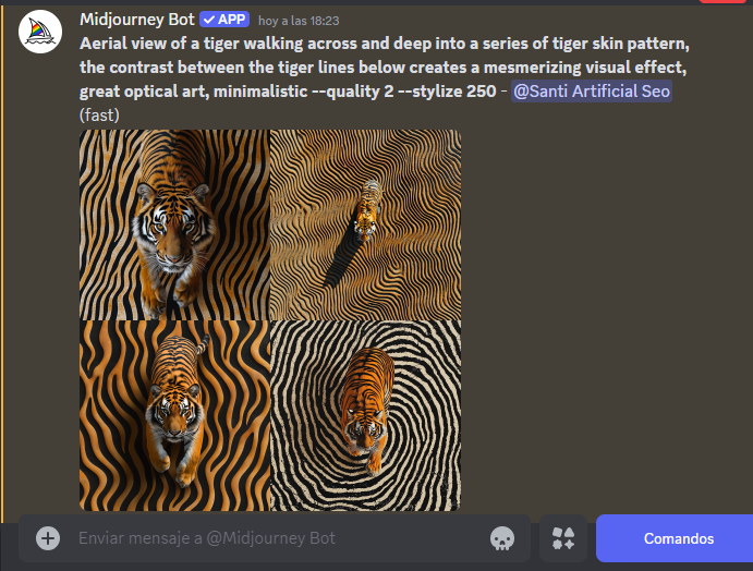 Evaluar los resultados: Midjourney generará cuatro imágenes basadas en el prompt.