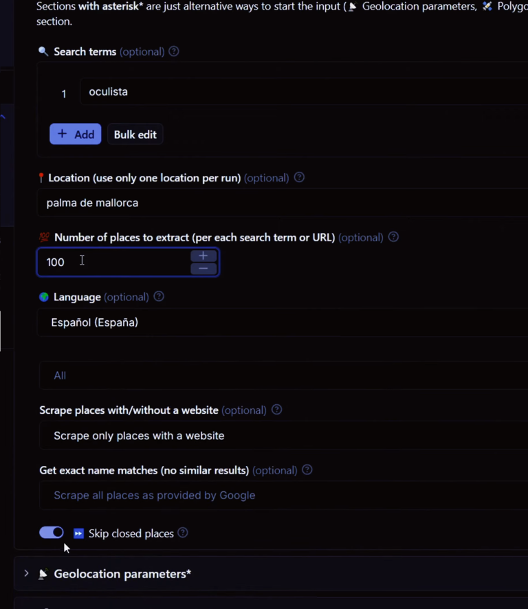 Omitir negocios cerrados: es muy importante activar esta opción para evitar gastar recursos en locales que ya no están operativos.